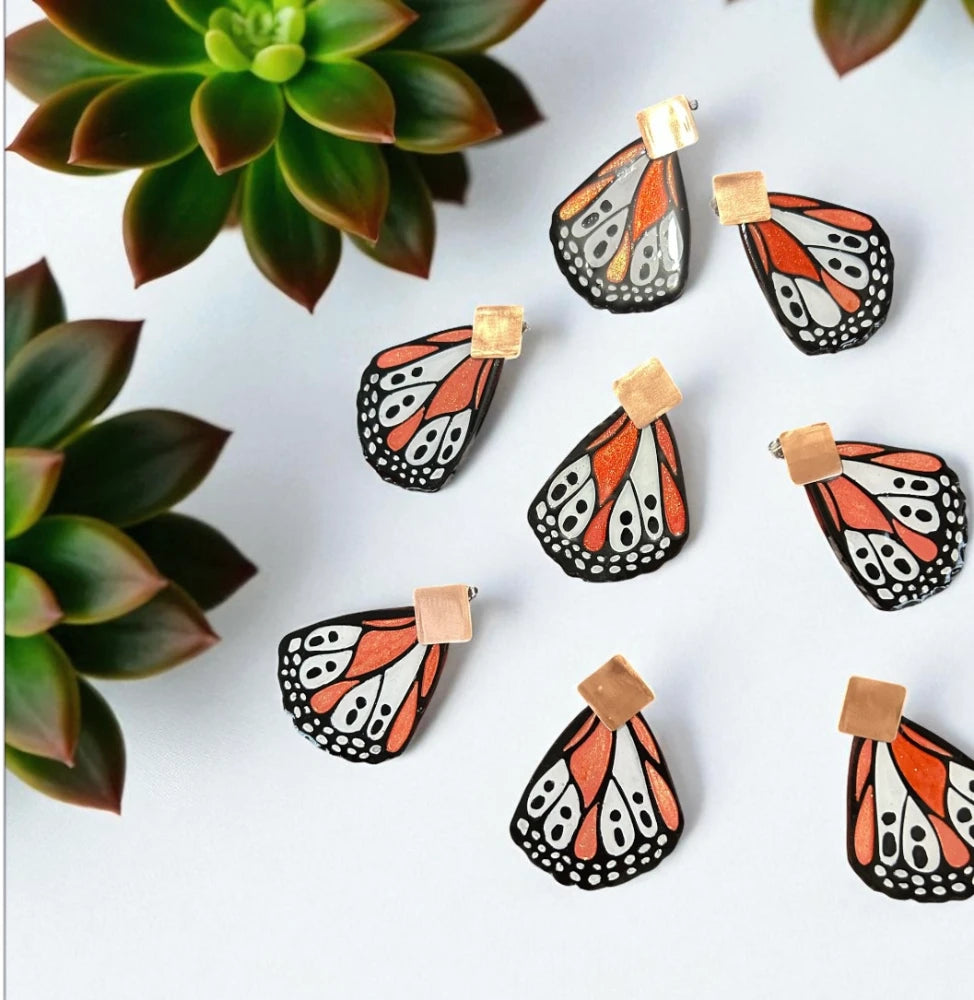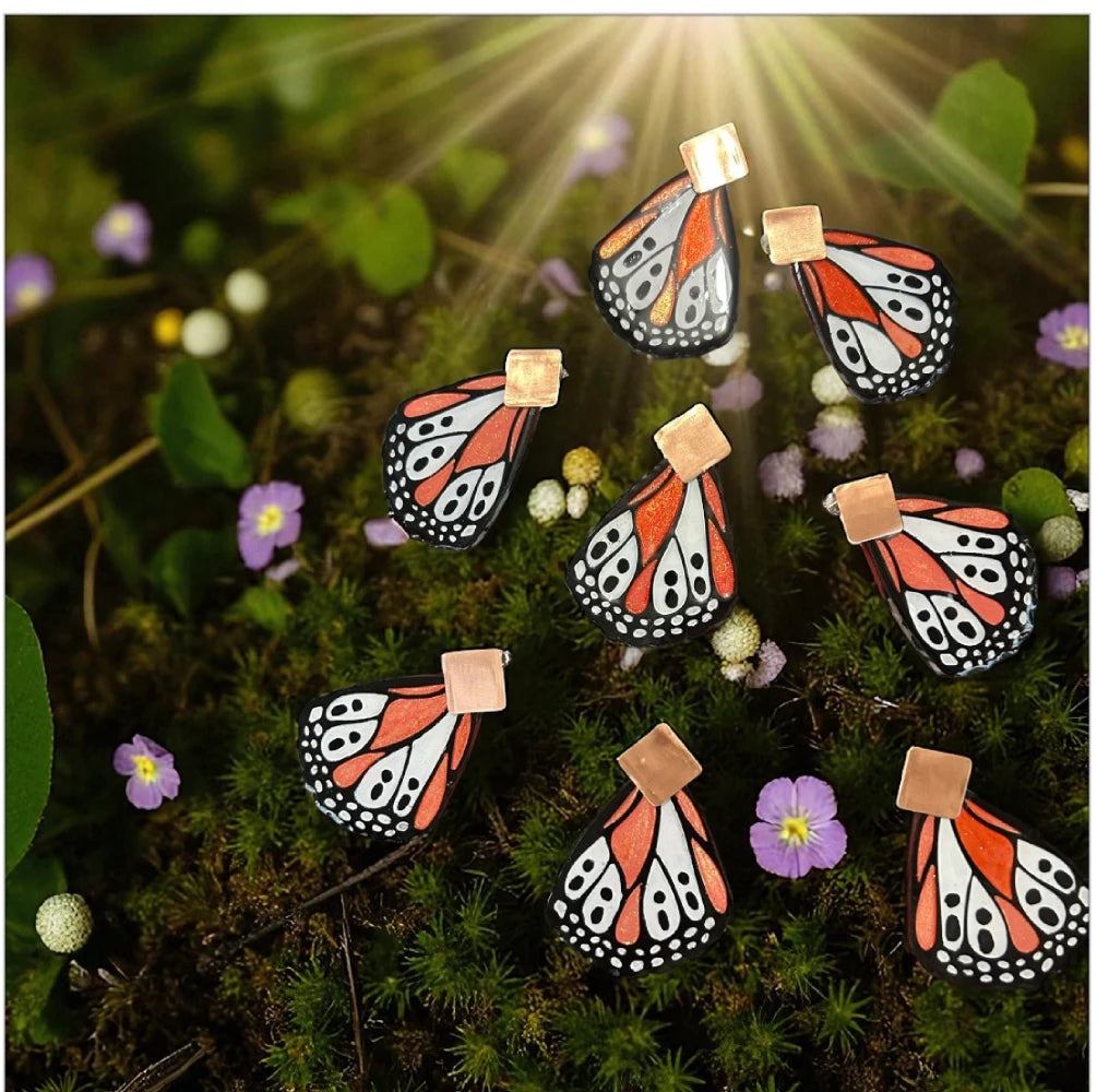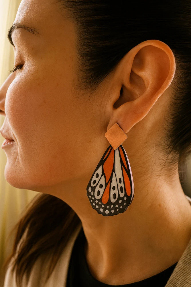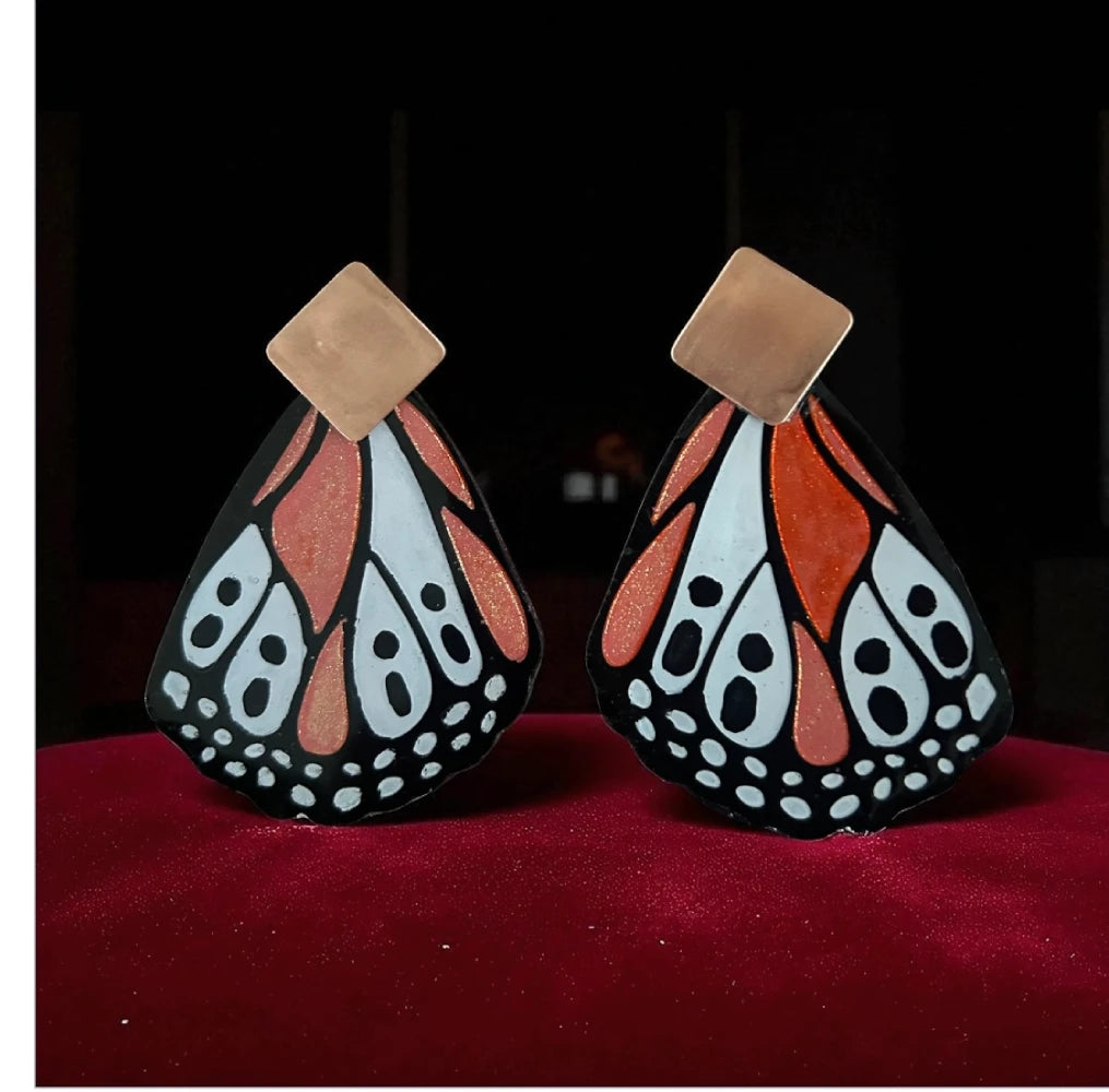 Los Aros de Mariposa Isabella evocan la magia de la transformación y la libertad. El diseño inspirado en las alas de una mariposa transmite ligereza, movimiento y un aire poético de renacimiento. El contraste entre el negro profundo de los bordes y los tonos cálidos anaranjados con destellos brillantes aporta vitalidad, recordando la energía del sol y la naturaleza en su máximo esplendor. Al llevarlos, la persona proyecta alegría, frescura y una conexión con la belleza orgánica del mundo natural, como si llevara consigo un pequeño fragmento de alas listas para volar.