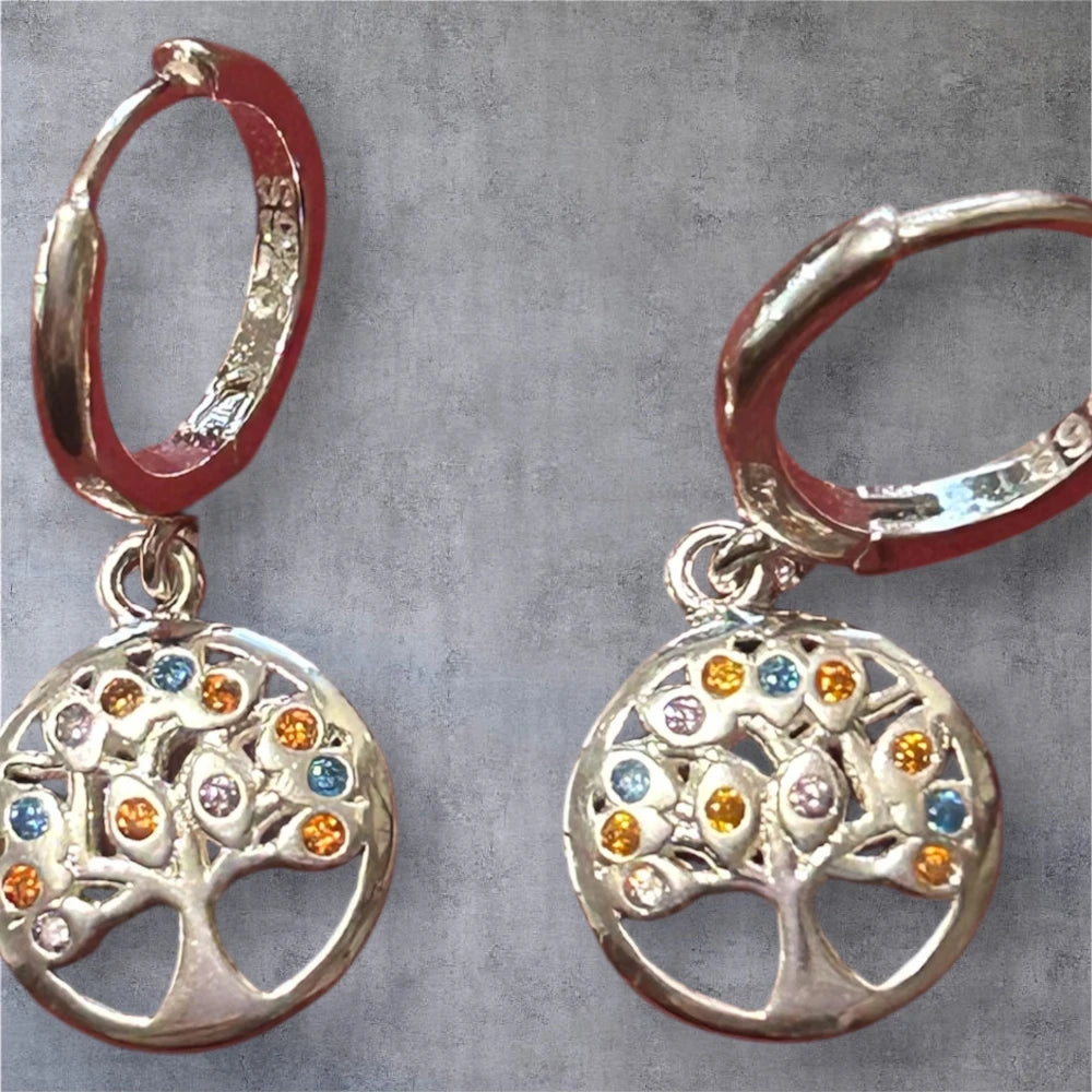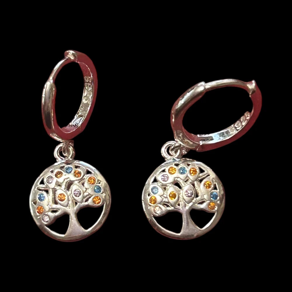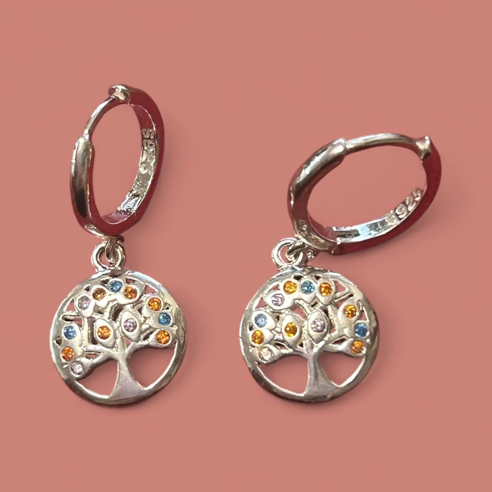 Aros de Plata 925 Argolla con Arbol de la Vida
