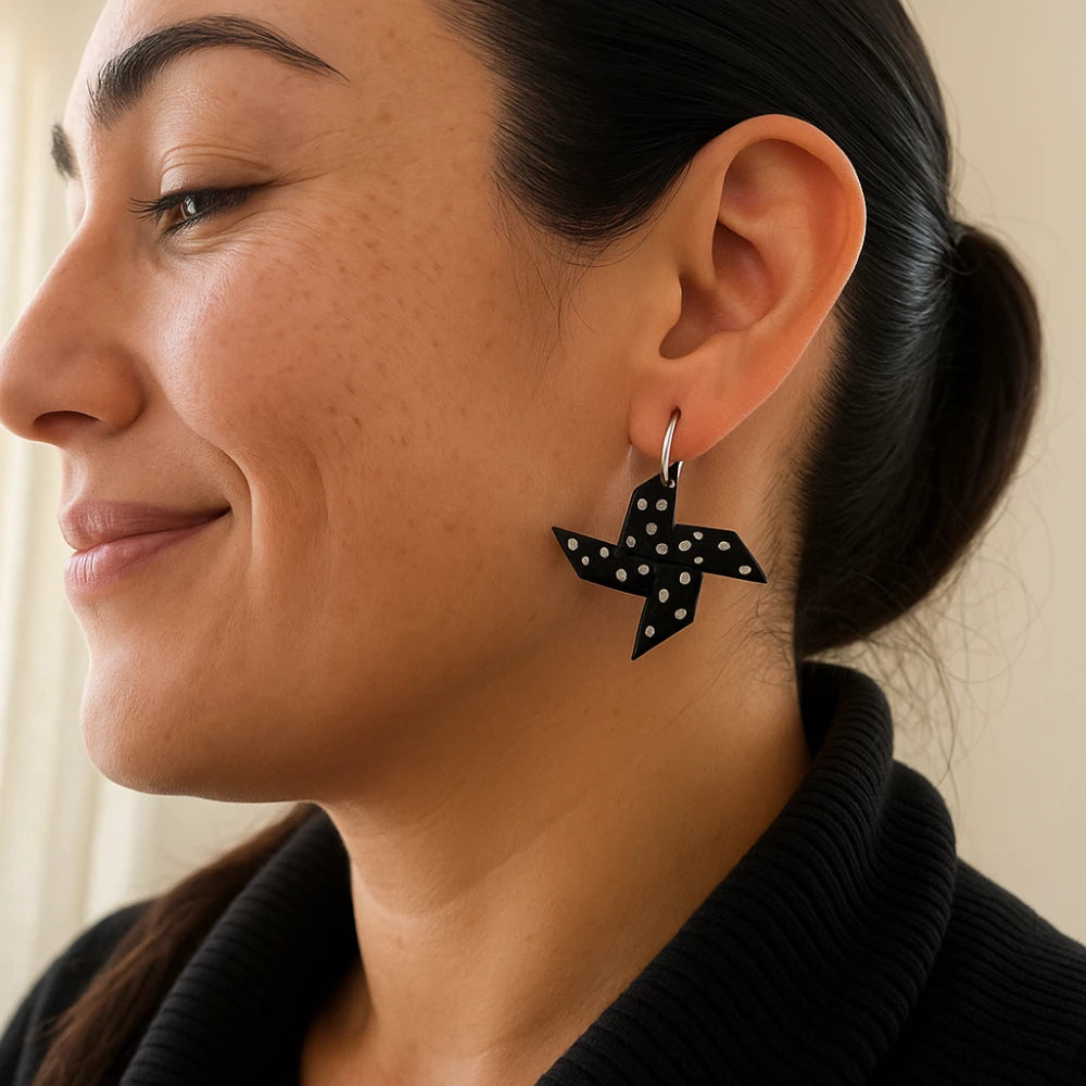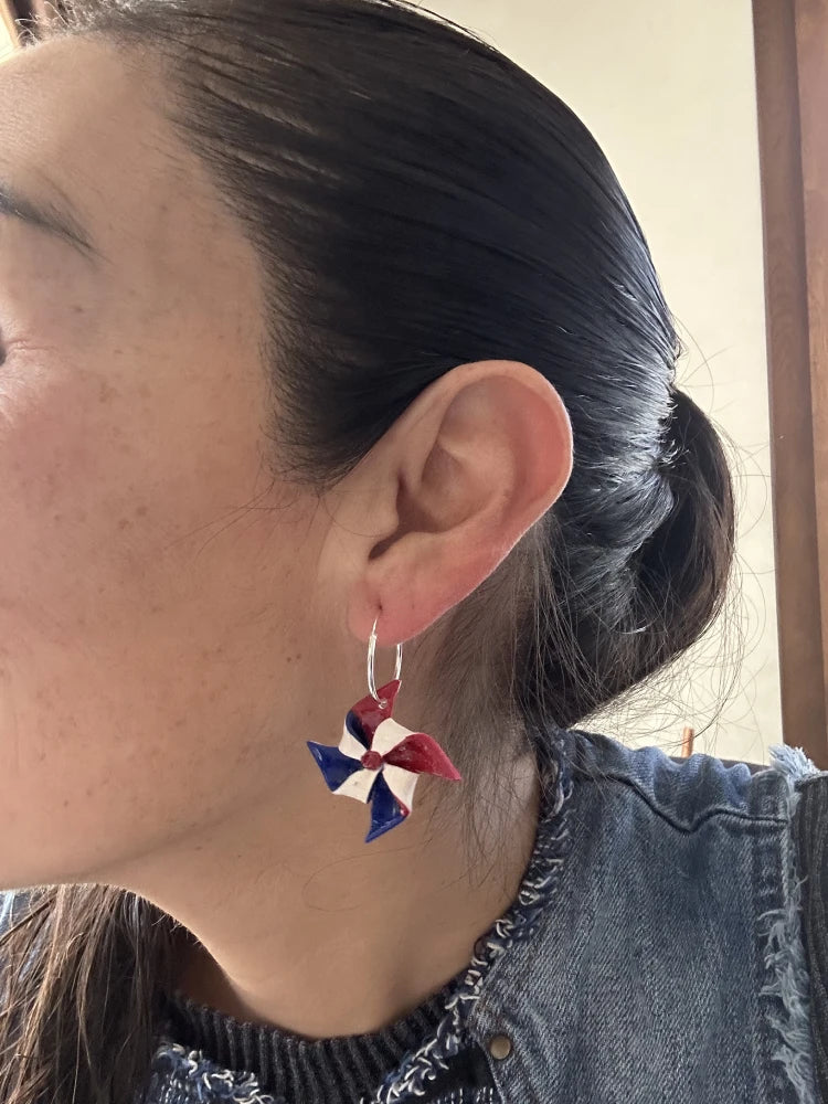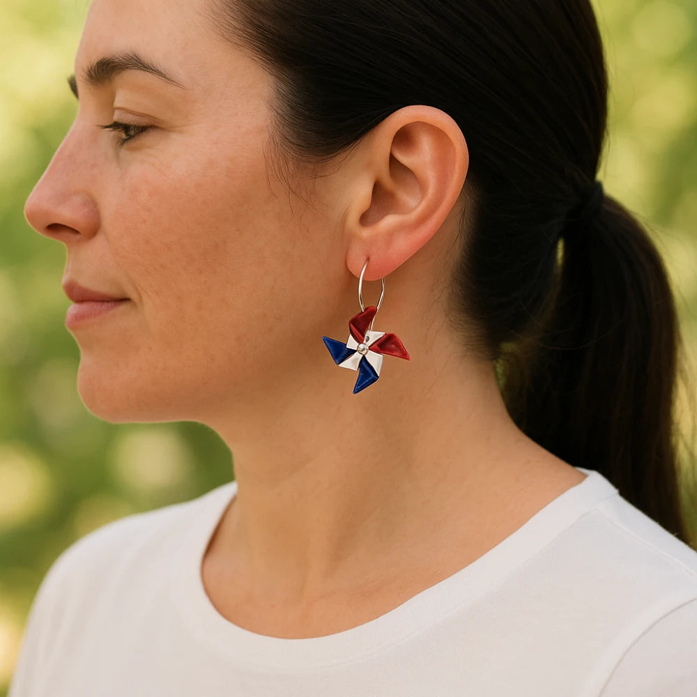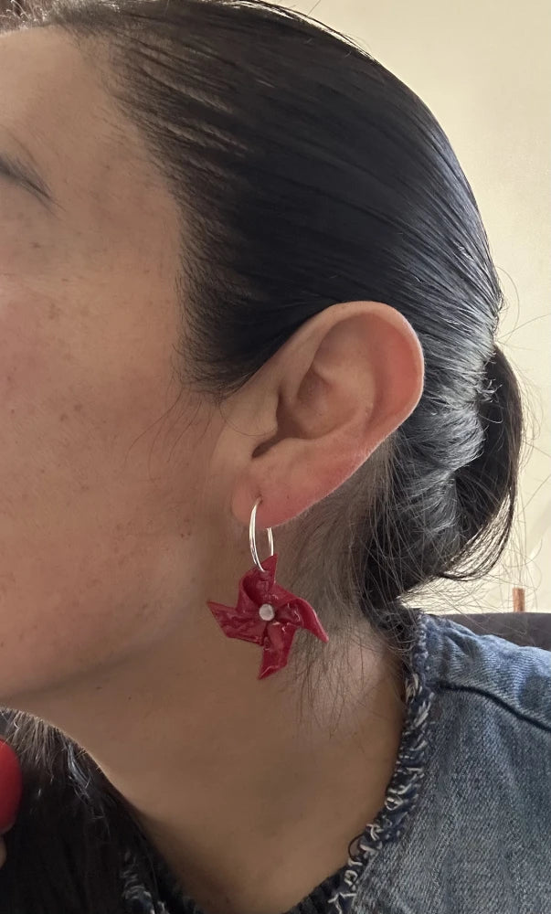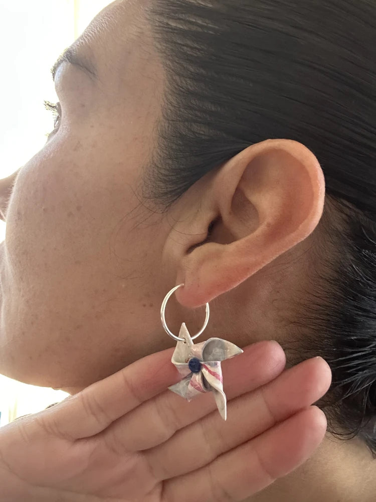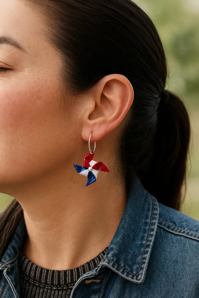 Estos aros de Plata 925 en forma de argollas con un dije de Remolino transmiten alegría, identidad y orgullo nacional. Su diseño en forma de remolino, con los colores blanco, azul y rojo, así como sus variantes, evocan el espíritu festivo de septiembre en Chile, recordando juegos, tradiciones y celebraciones al aire libre. El movimiento simbólico del remolino refleja dinamismo, libertad y energía, mientras que sus colores vibrantes conectan de inmediato con la bandera chilena, despertando un sentido de pertenencia y unión. Son accesorios que no solo adornan, sino que cuentan una historia y generan la emoción de llevar puesto un pedacito de patria.