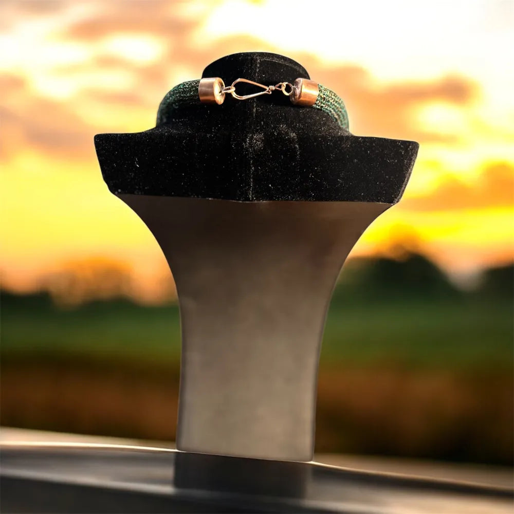 Collar de Cobre Tejido Simona Verde Esmeralda Triaura