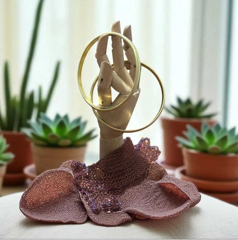 La Pulsera de Bronce Guillermina de Triaura es una pulsera de Bronce, elaborada a mano con delicadeza y dedicación logrando envolver la muñeca con la calidez de un abrazo atemporal.